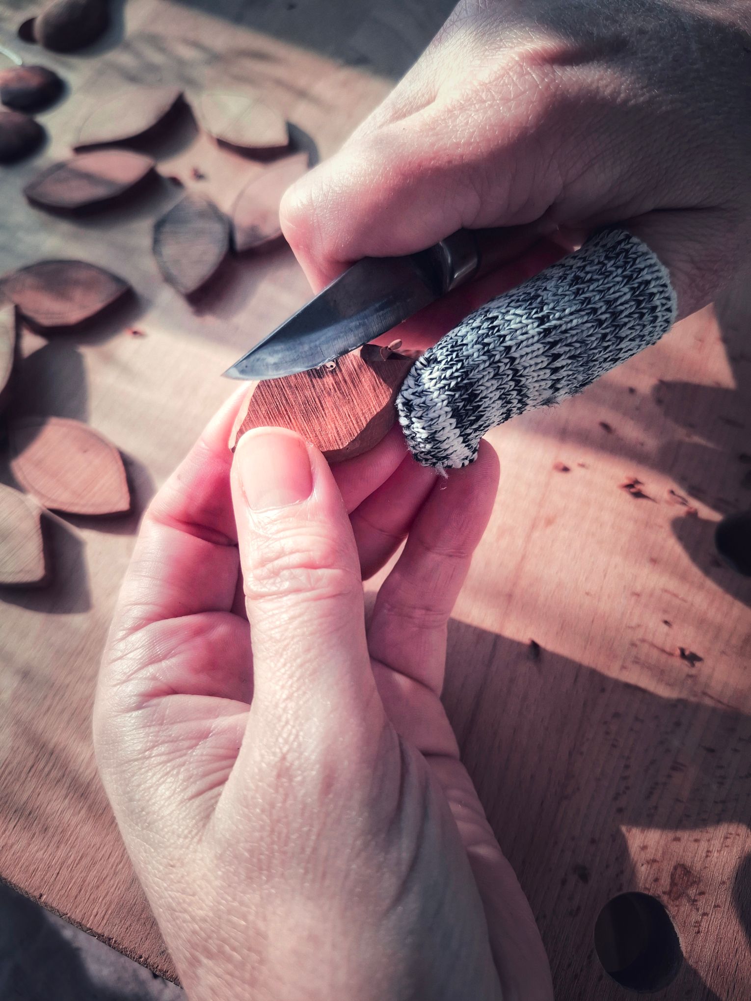 • Základy řezbářských technik – naučíte se držet nůž, ořezávat a tvarovat dřevo bezpečně a kreativně.